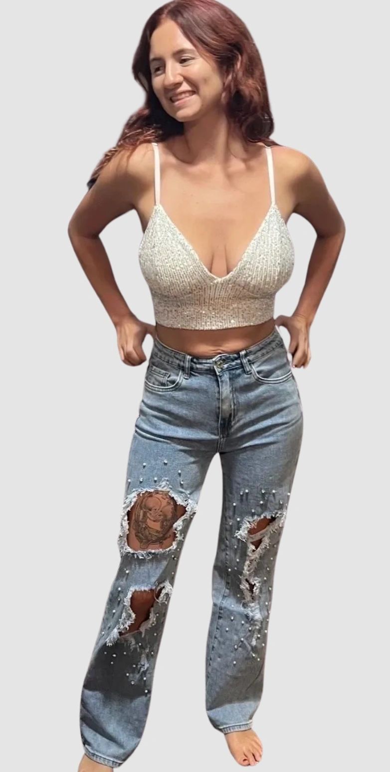 Dakota Rhinestone and Pearl Jeans by ITOO