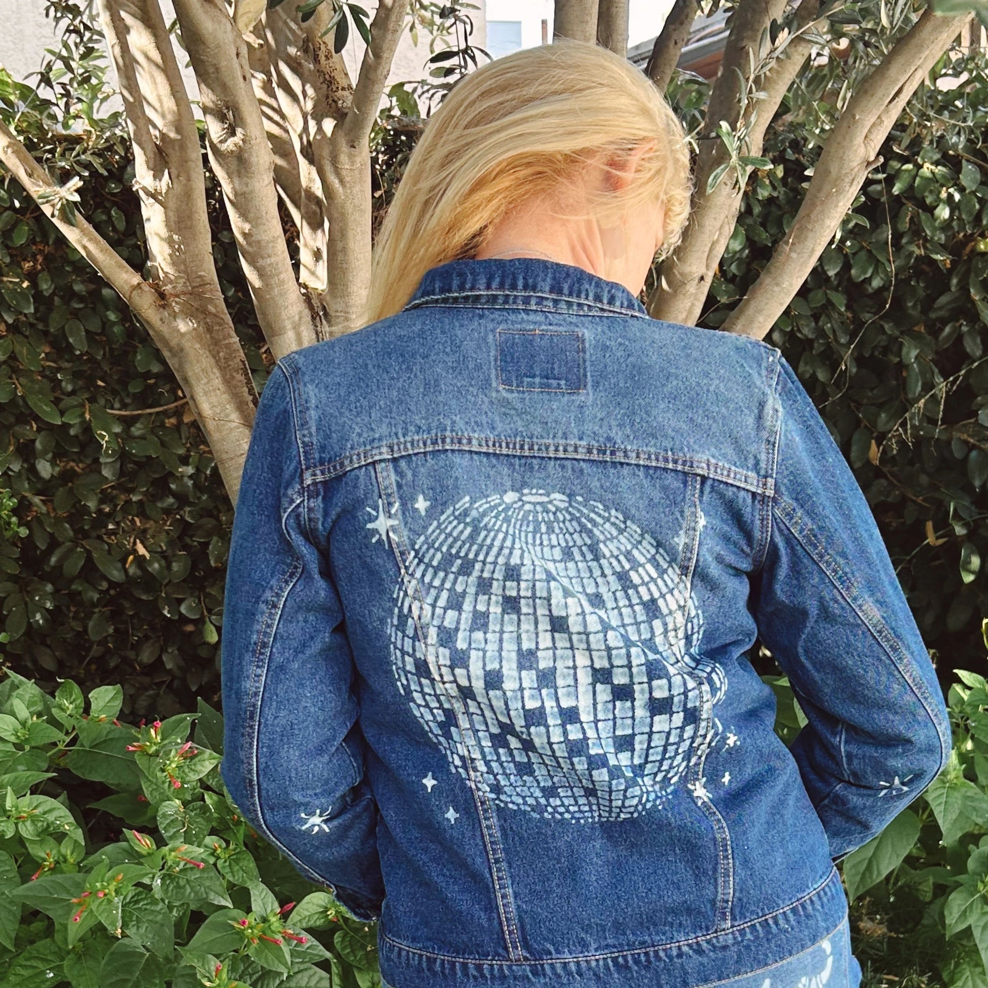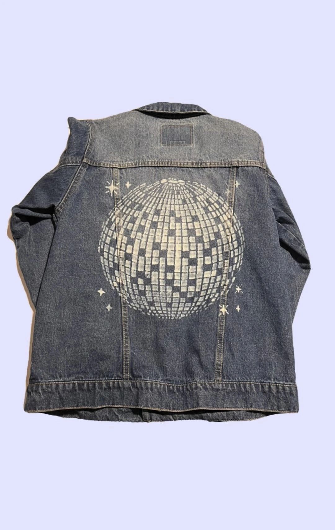 This hand-bleached original GROOVY disco ball Levi jacket is fun and funky. This Levi Jacket is new. Enjoy this and be the envy of a skate party, retro get together, concert or just because.