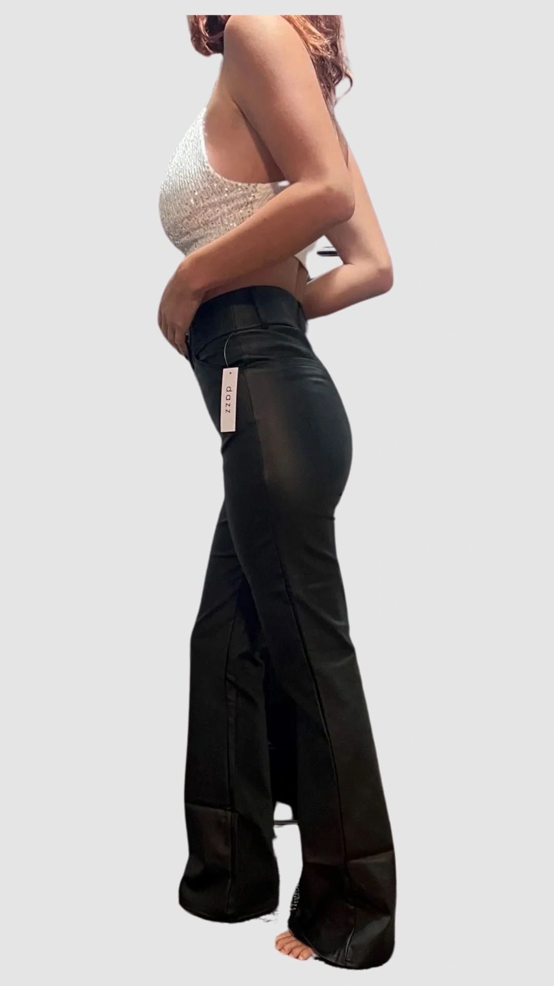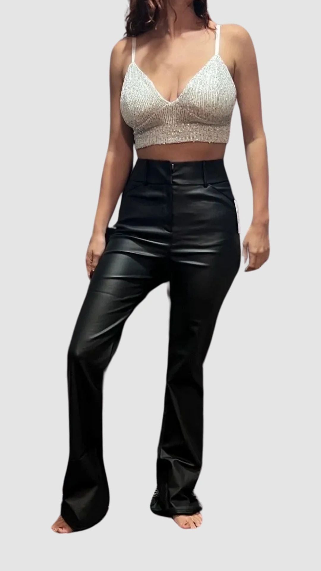 Pair with our Betsy Black, Silver and Gray Sequined tank top with adjustable straps. These pants are great for a night out on the town, a concert or for a holiday celebration.