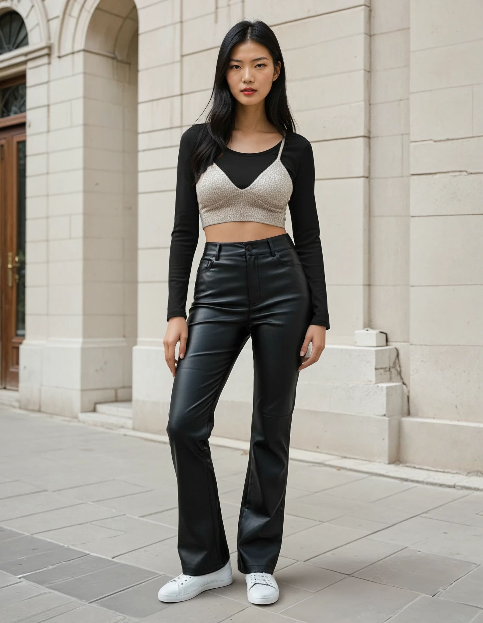 These well-tailored Sleek Coated High Waisted Flare Trousers in sophisticated black are