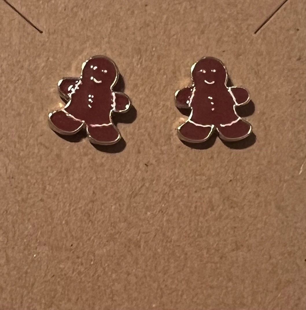 Gingerbread Post Earrings with GOLD and White Painted Highlights.