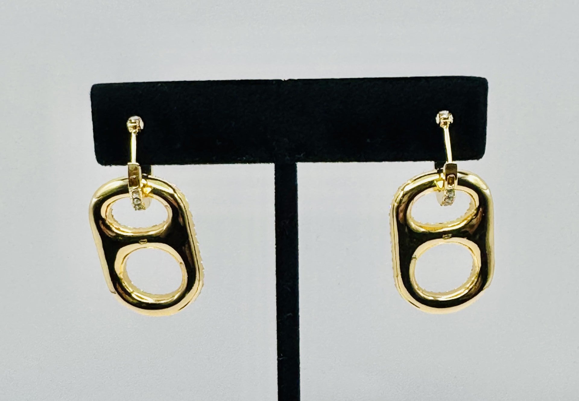 Luxe Sun Kissed Gold Classic Pop Tab and Rhinestone Huggie Hoop Earrings with 18K gold coating on brasspoptab