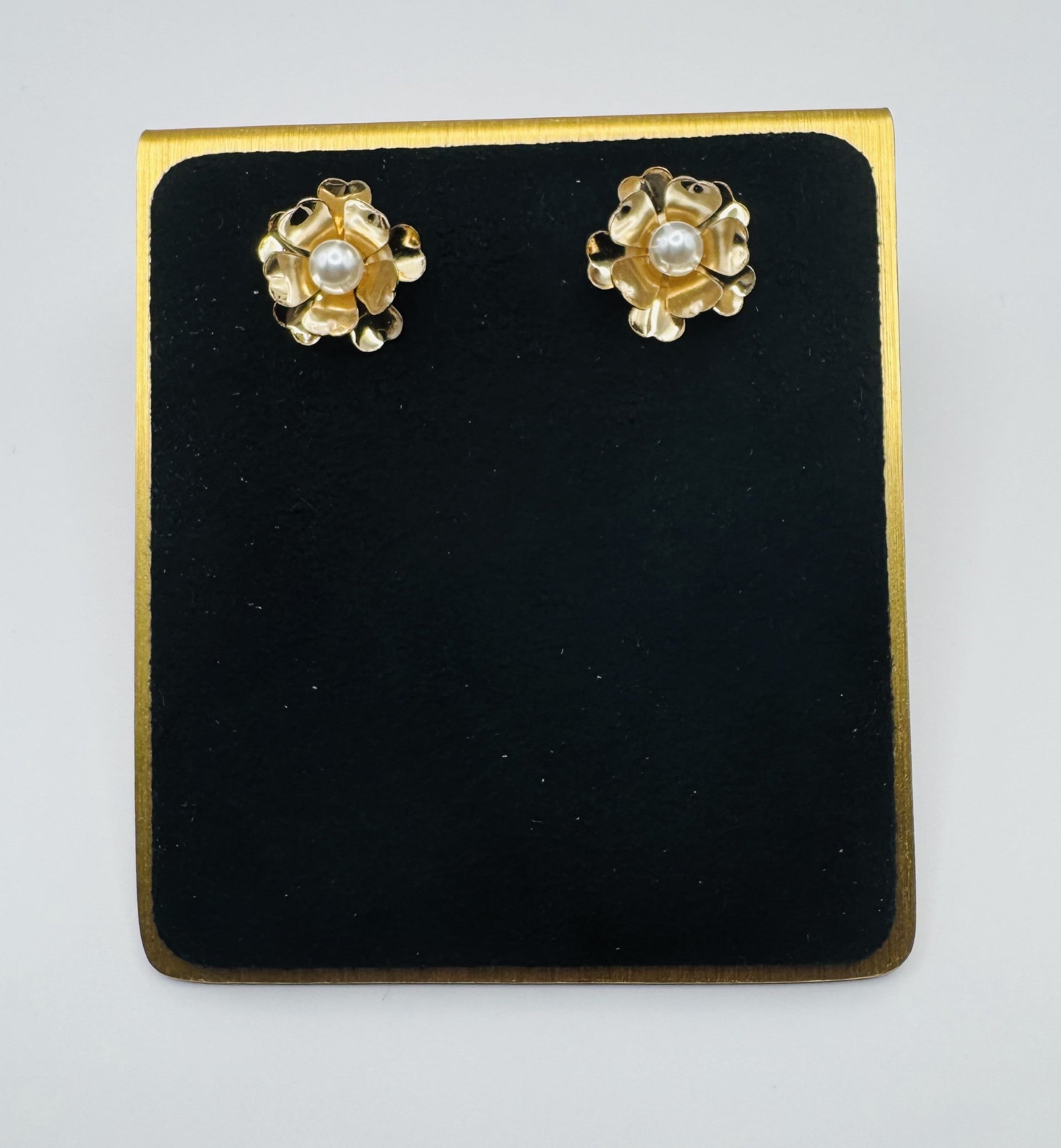 Introducing our Mini Flower Post Earrings, elegantly coated in gold and adorned with faux pearls. Delicate and charming, these earrings add a touch of sophistication to any outfit. Perfect for everyday wear. One Size. Lead Compliant.