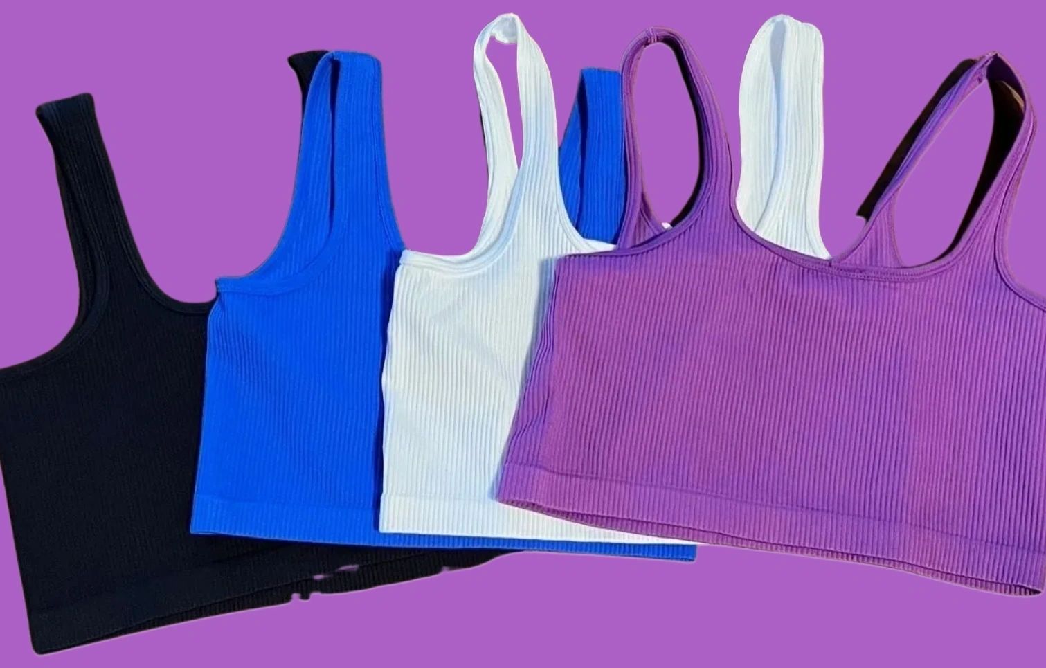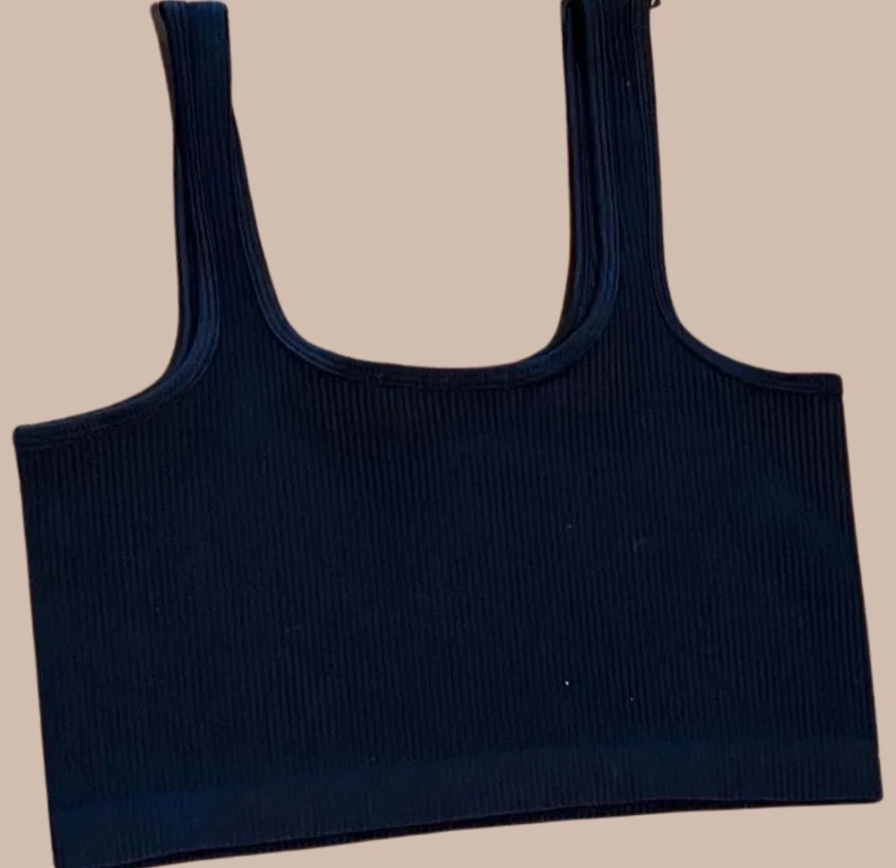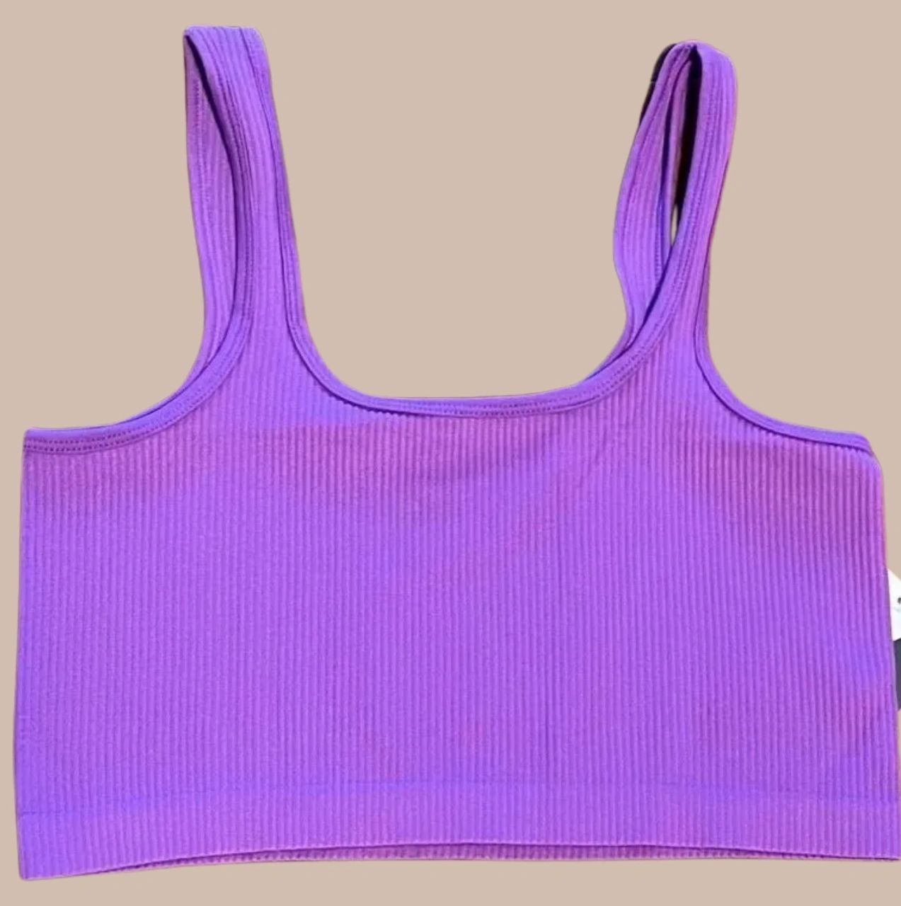 Seamless Ribbed Cropped Square Neck Tank - Cami Top. These tanks are a great staple to have in your closet to wear by themselves or under your favorite, blouse, sundress, hoodie or jacket. They are soft and cool to the touch. They are seamless and help smooth and gives coverage. They come in Small/Medium and Medium/Large. We have Royal Blue, Black, Violet and Bright White. They have lots of stretch and can accommodate many sizes. Small/Medium is from zero to size 8 and Medium/Large anywhere up to a 16/18, it all depends on your measurements. I love these and will be ordering more colors when these are gone. <3 Please note that the individual photo of the white is off color and is really bright white.