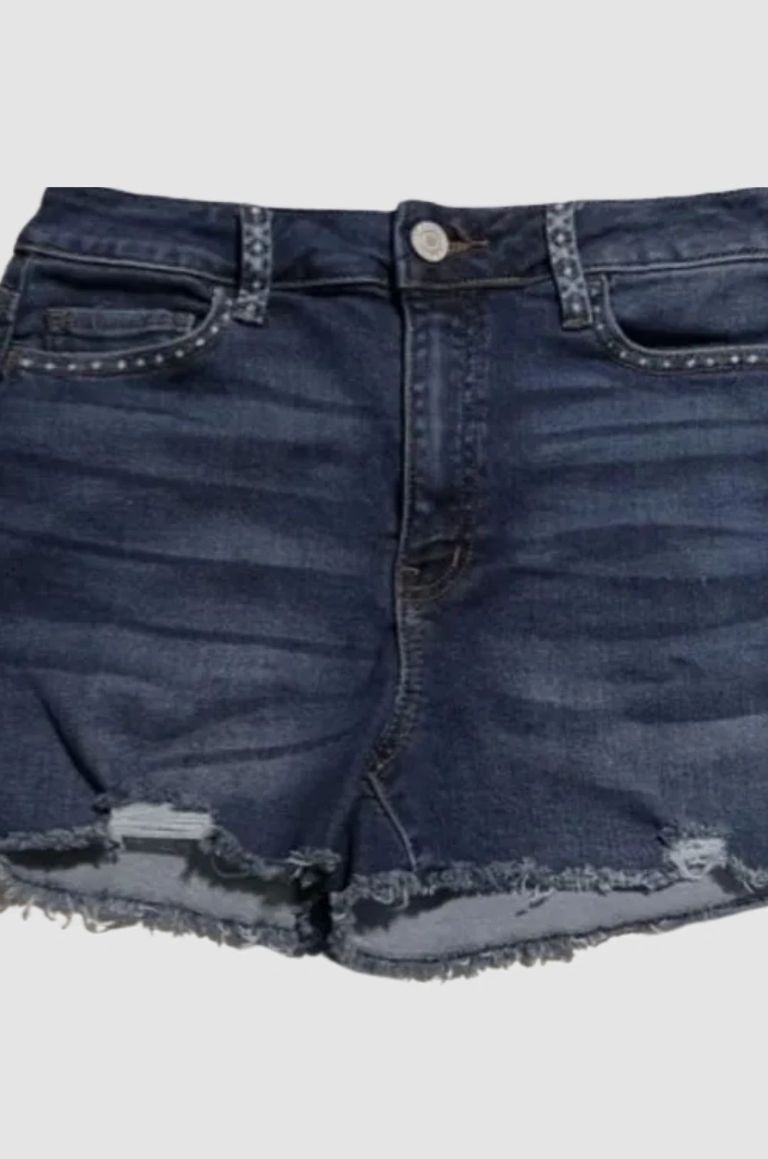 Steer Clear Curvy Shortie Short ~ Super High Rise 9/29 W. These shorts are super comfortable. They are curvy through the hip and thigh. Hits at upper thigh. 2.5 inseam. There is an X pattern on the beltloops in the front and back and a raw hem. There is a button zip front closure with back and front pockets. This is a new SO jean with hand-bleached longhorn design. Supports more sustainable cotton farming and contains recycled polyester. Paired with our bandana top and bolero sweater.