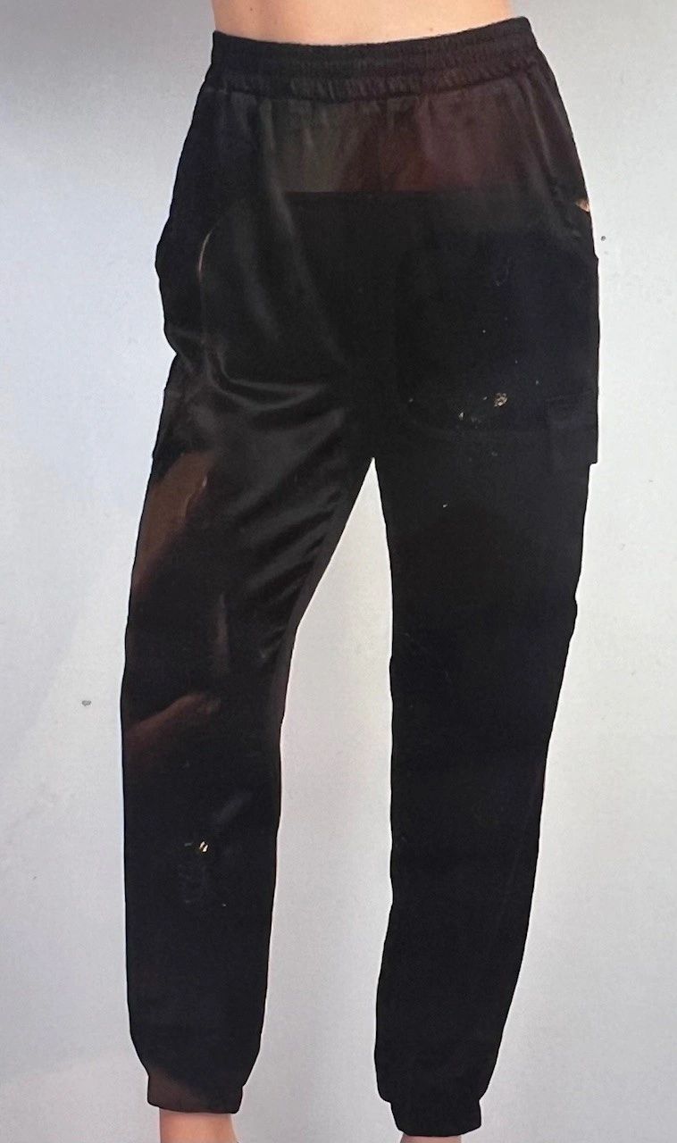The Perfect Satin Cargo Jogger Pants Elastic Waist and Hem Side Flap Pockets Full Length Tapered
