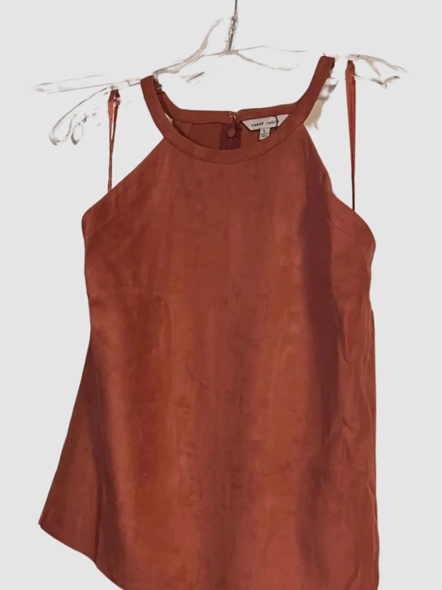 The Rebecca Faux Leather Tank Top with a thick high collar in Earth and Clay. Ya'll these tops are BUTTERY soft and amazing to touch. They are so soft on your skin. It has a smooth raw hem at the waistline and is well tailored. It has a back zipper with a hook & eye closure. There is some room in the shirt and there is a great amount of stretch.