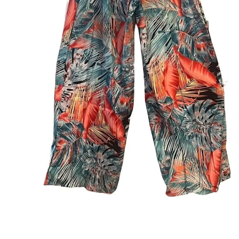 The vibrant tropical print—splashed in turquoise, teal, orange, and golden yellow—makes it a standout for any occasion. Style with flats for effortless resort vibes or elevate with heels for a night out.