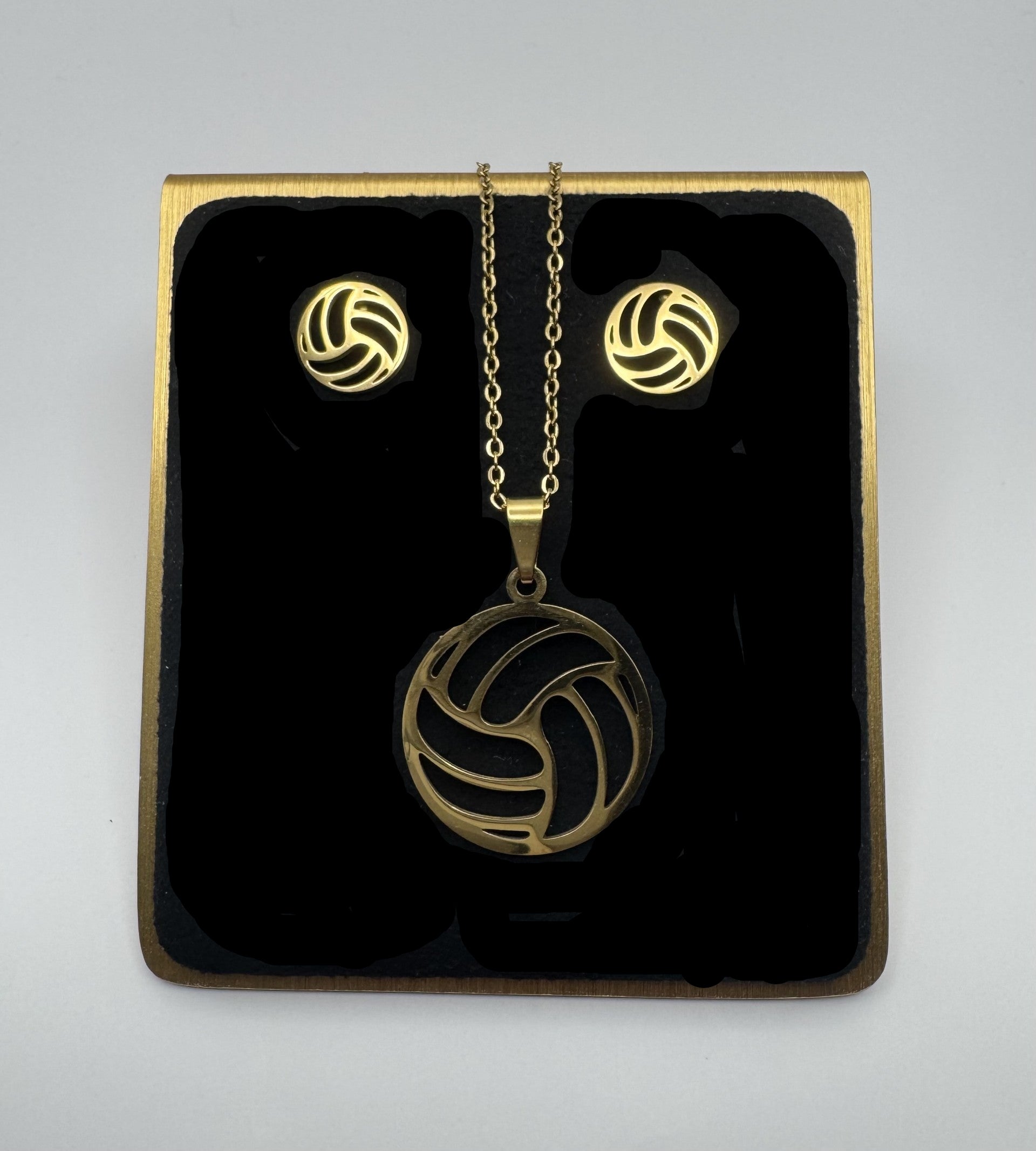 Coastal Serve Volleyball Pendant & Hoop Set – Silver or Gold Finish